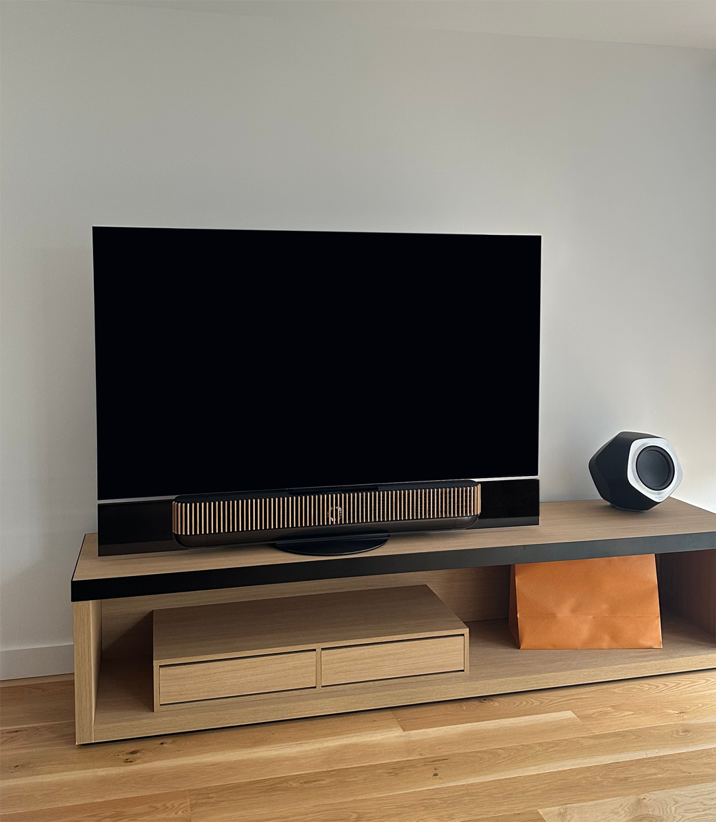 Installation d'un téléviseur BEOVISION THEATRE et d'une enceinte BEOLAB 19 chez un particulier.